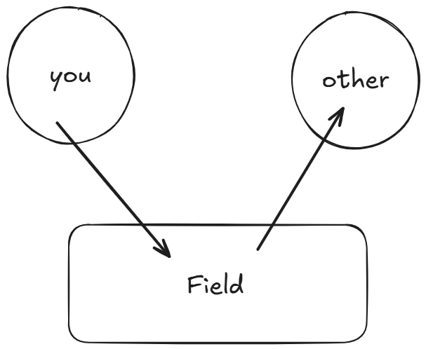 - The interaction therefore does not take place directly between two people, but through the field.